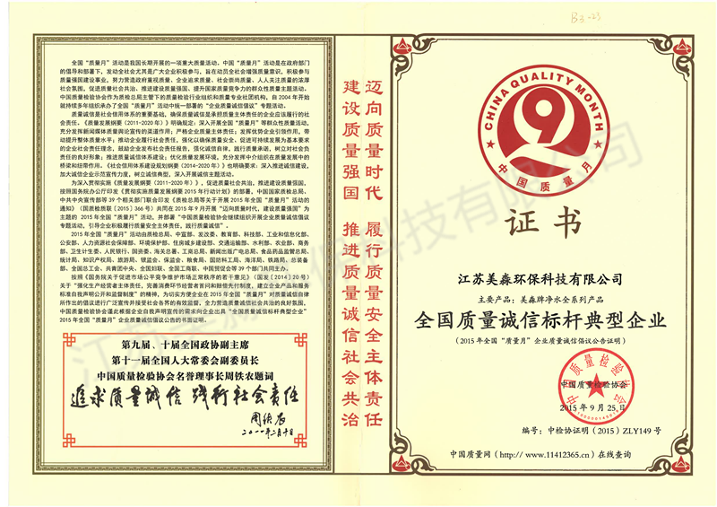 2015年全國(guó)質(zhì)量誠(chéng)信標(biāo)桿典型企業(yè)