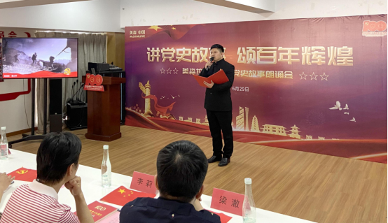 為慶祝中國共產(chǎn)黨成立100周年,深入開展黨史學(xué)習(xí)教育,重溫革命歲月,傳承紅色基因,凝聚奮進(jìn)力量,厚植愛國情懷,6月29日下午,美淼控股黨支部組織開展“講黨史故事 頌百年輝煌”為主題的紅色經(jīng)典誦讀活動,共慶黨的百年華誕,持續(xù)推動黨史學(xué)習(xí)教育走深走實。科教城管委會黨群工作處處長鄔淵、武進(jìn)區(qū)人社局引智中心副主任何英芳、科教園區(qū)各黨支部書記代表、美淼支部全體黨員及部分員工代表共50余人參加活動。